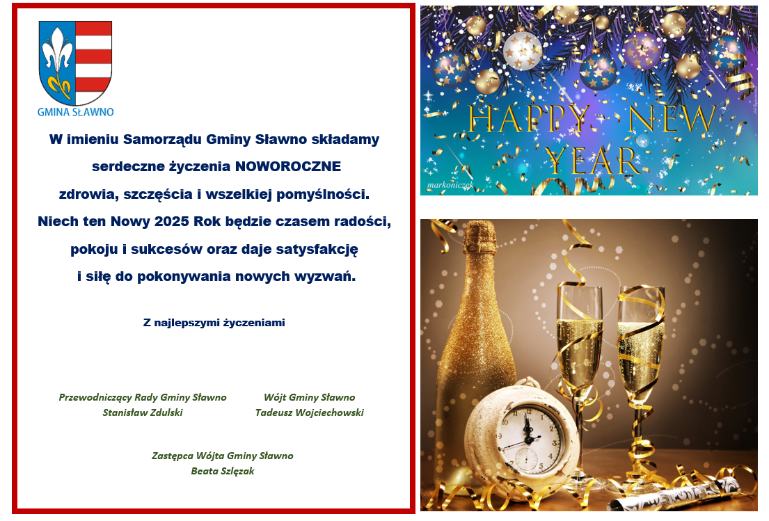 W imieniu Samorządu Gminy Sławno składamy serdeczne życzenia NOWOROCZNE